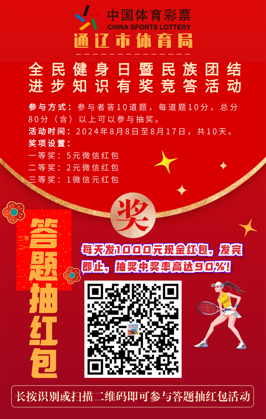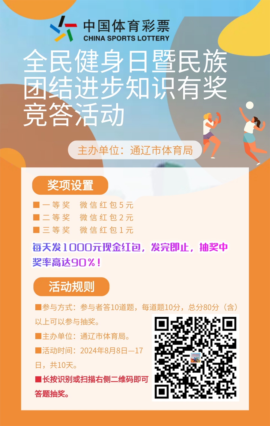 2024年8月5日,通遼市大尚網(wǎng)絡(luò)技術(shù)服務(wù)有限公司與通遼市體育局達(dá)成合作協(xié)議,大尚網(wǎng)絡(luò)公司負(fù)責(zé)通遼市體育局“全民健身日暨民族團(tuán)結(jié)進(jìn)步知識(shí)有獎(jiǎng)競(jìng)答活動(dòng)”系統(tǒng)開發(fā)制作工作,活動(dòng)正在進(jìn)行中,敬請(qǐng)期待。