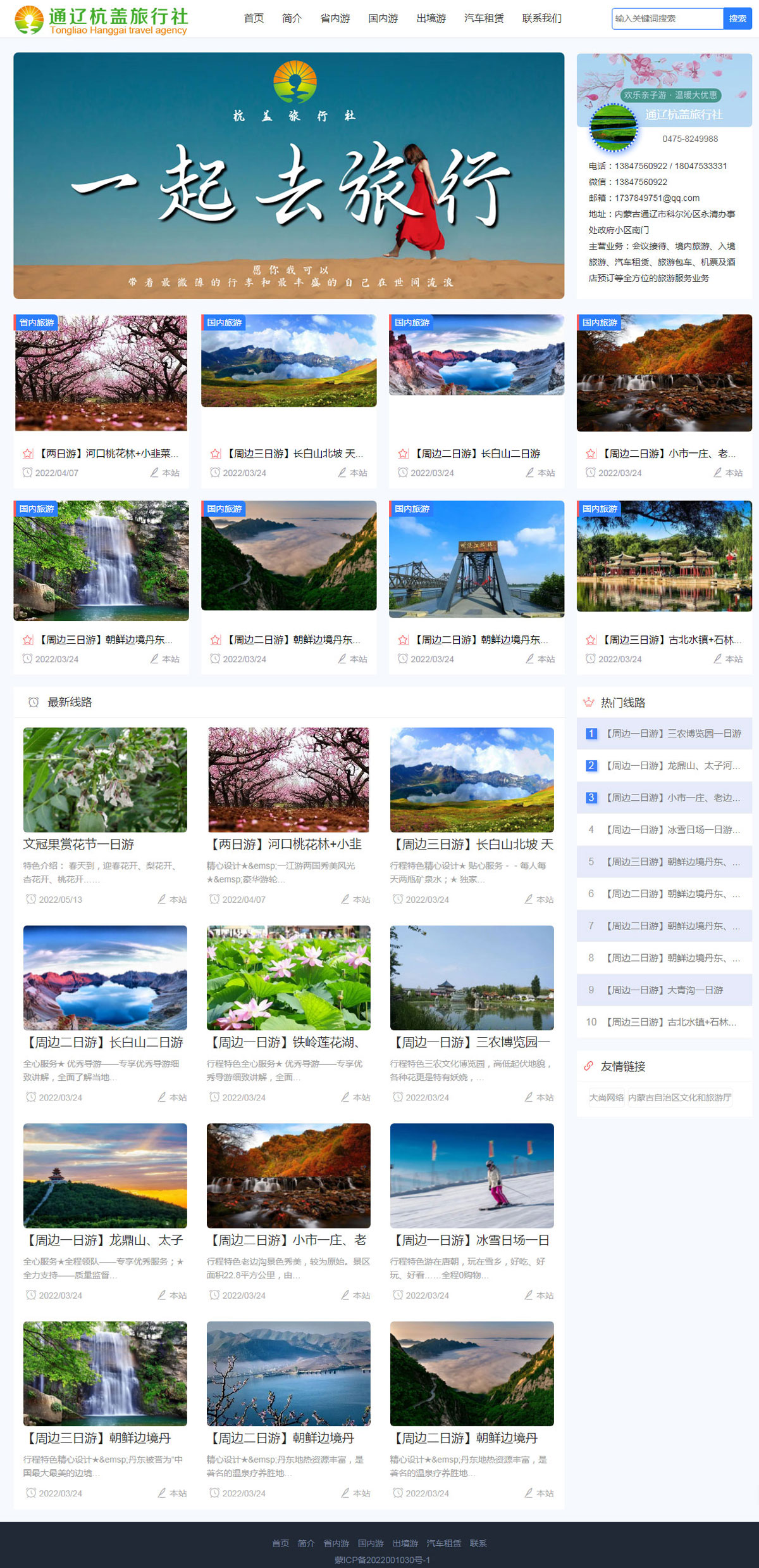 通遼市杭蓋旅行社有限公司成立于2019年,是由內蒙古自治區(qū)旅游局批準,經(jīng)通遼市工商局登記注冊,并足額繳納質量保證金的一家旅游企業(yè)。